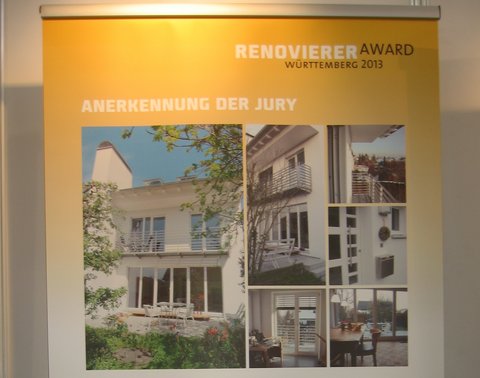 - Verleihung des RENOVIERER AWARDs WÜRTTEMBERG 2013: Auszeichnung als besondere Anerkennung im April 2013